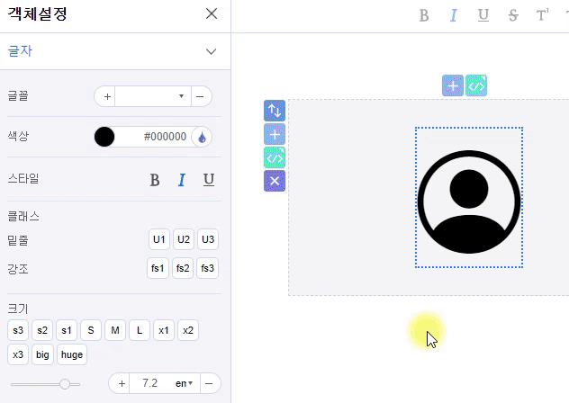 몽9에디터에서 제공하는 아이콘은 텍스트 처럼 크기와, 색상 변경을 자유롭게 할 수 있습니다.