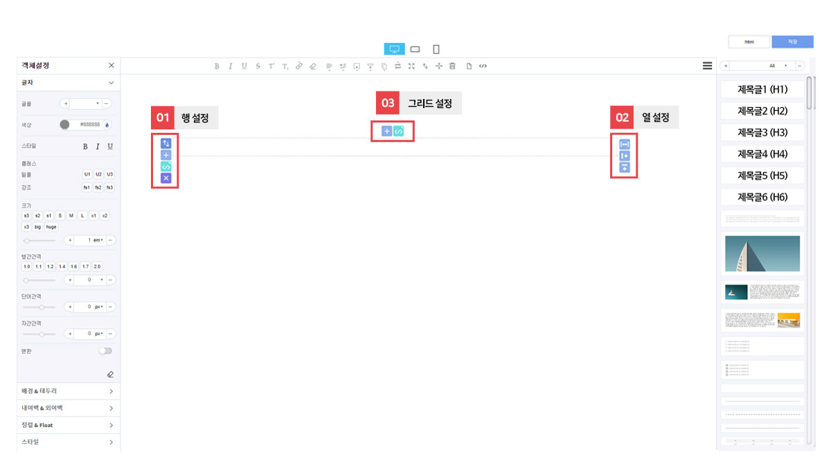 왼쪽에 생성되는 3개의 버튼은 열 설정 버튼입니다.
